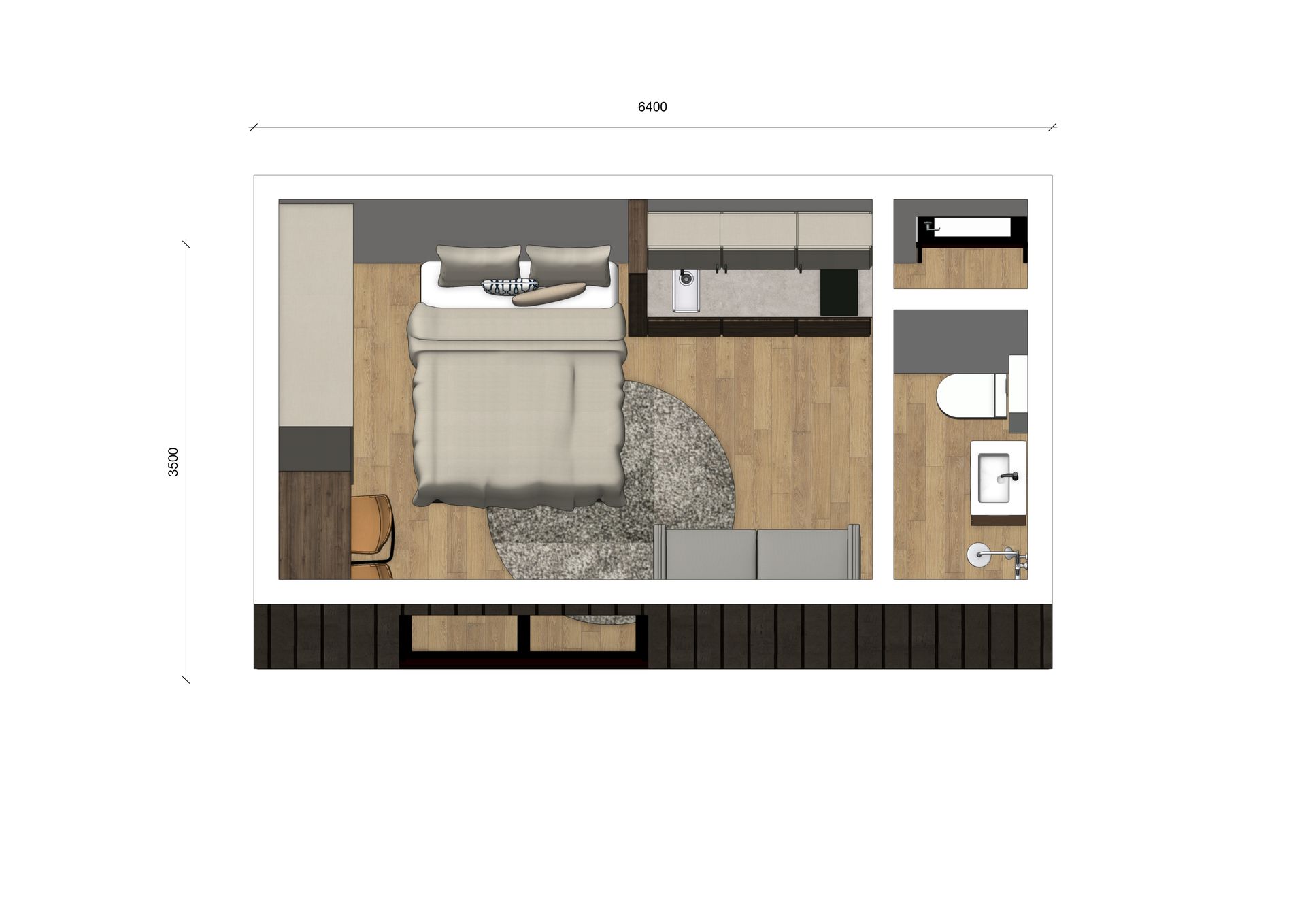 Model Amber is met een oppervlakte van 22,4 m² een efficiënt ingericht verblijf voor de recreatieve markt. Met compacte afmetingen van 6,40 x 3,50 meter is deze woning specifiek ontworpen als B&B of kleinschalige vakantiewoning.